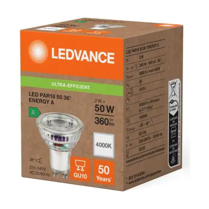 Descrizione Ledvance LED PAR16 GU10 Riflettore 2W 360lm 36D - 840 Bianco Freddo | Sostitutiva 50W