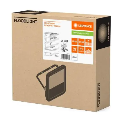 Descrizione Ledvance Proiettore LED Aluminium Nero 69W 10000lm 100D - 840 Bianco Freddo | IP66 - Simmetrico