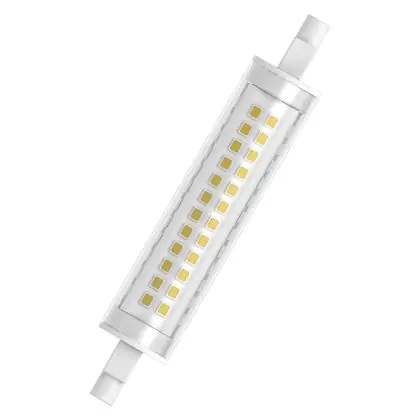 La Ledvance Slim Line LED R7s 118mm Chiara 12W 1521lm - 827 Bianco Molto Caldo | Sostitutiva 100W è perfetta per la sostituzione della convenzionale Lampada alogena 100W R7s con colore della luce 827 Bianco Molto Caldo. Questa lampada ha una forma e va alimentata con 220-240 Volt. Passare a led ha molti vantaggi!