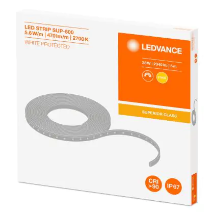 Descrizione Ledvance Strisce LED Superior 500 28W 2340lm 24v - 927 Bianco Molto Caldo | 5M/13mm - Miglior resa cromatica