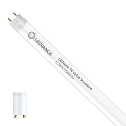 Il Ledvance Tubo LED T8 Superior (EM/Mains) Standard Output 6.3W 995lm - 830 Luce Calda | 60cm - Sostitutiva 18W è l’alternativa perfetta per il tubo fluorescente standard 18W nelle plafoniere con un reattore. Con questo tubo LED hai una garanzia di una vita media utile molto lunga e 5 anni Lampadadiretta.it di totale garanzia. .
