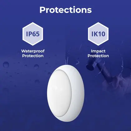 Un elemento importante delle plafoniere e delle applique LED è il loro livello di proezione IP, che indica la protezione contro l'ingresso di polvere e umidità/acqua. A partire da IP65, un apparecchio di illuminazione è a prova di polvere e acqua. Il valore IP di questa plafoniera LED è: IP65. Stai cercando una plafoniera LED per esterni? Allora presta attenzione alla protezione da urti e impatti, ovvero il valore IK, che per questa lampada è IK10 - 20 Joule.