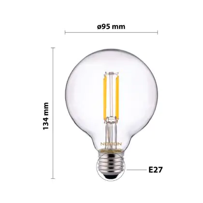 La Noxion Lucent Filamento LED E27 Globe Chiara 7W 806lm - 827 Bianco Molto Caldo | Dimmerabile - Sostitutiva 60W è la perfetta sostituzione per la tua lampada convenzionale 60W con attacco E27 grazie alla sua tecnologia LED. Passare a LED ti offrirà tanti vantaggi!