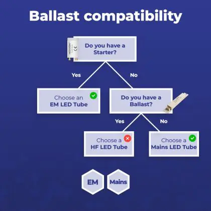 Quando passi a LED è importante controllare il wattaggio e la lunghezza del tubo da sostituire. Questo tubo LED di 8W sostituisce un tubo convenzionale di 18W con una lunghezza di 604mm. Questo tubo può farti risparmiare più del 50% in costi di energia se è comparato con un tubo fluorescente tradizionale.