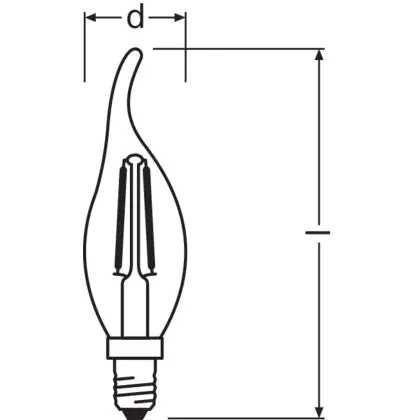 Descrizione Osram Classic LED E14 Piegato-tip candle Filamento Chiara 2.5W 250lm - 827 Bianco Molto Caldo | Sostitutiva 25W