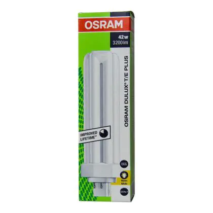 Le Osram Dulux T/E 42W/830 PLUS Lumilux Warm White sono lampade a basso consumo caratterizzate da una vita media lunga e che emettono una luce di buona qualità. La base di queste lampade fluorescenti compatte é del tipo a 4 pin (perni).