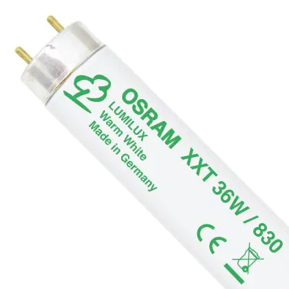 Gli Osram T8 L 36W/830 XXT G13 Warm White sono tubi fluorescenti che presentano una base G13 e misurano 120cm. La potenza di questi tubi fluorescenti corrisponde a 36W. Tali tubi rientrano in classe energetica 'B'. L'indice di resa cromatica si assesta nell'intervallo di 80-89Ra. La caratteristica peculiare di queste lampade sta nella loro lunga durata veramente eccezionale di 80.000 ore. I tubi in questione, con una temperatura di colore di 3000K, garantiscono una luce bianca calda, adatta per ambienti in cui si ricerca accoglienza e vivacità allo stesso tempo.