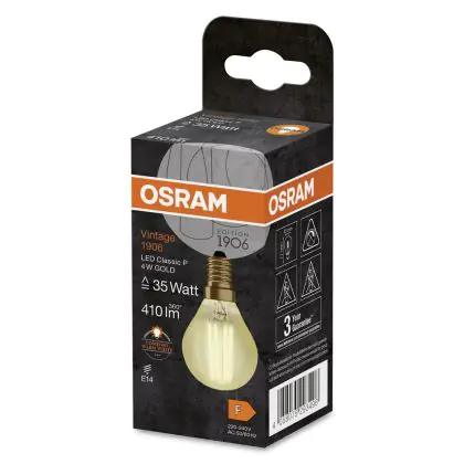 Descrizione Osram Vintage 1906 LED E14 Sferica Filamento Oro 4W 420lm - 825 Bianco Molto Caldo | Sostitutiva 35W